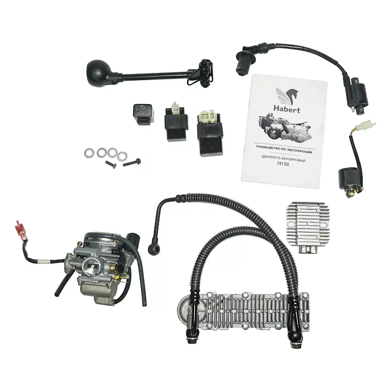 Для начала работы с мотором Хаберт H150 не потребуется больших усилий, поскольку он оснащен электростартером и бесконтактной электронной системой зажигания.