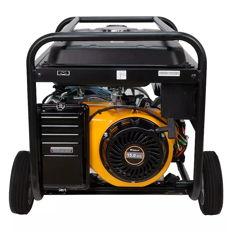 Генератор Habert HT8000EB смонтирован на прочной металлической раме, которая защищает его от механических повреждений, обеспечивает устойчивость во время работы. За счет простого доступа к свече зажигания, воздушному и топливному фильтрам, вы сможете самостоятельно производить техобслуживание.