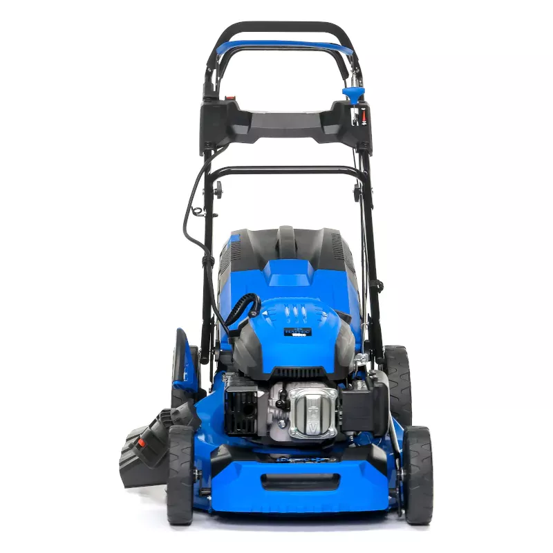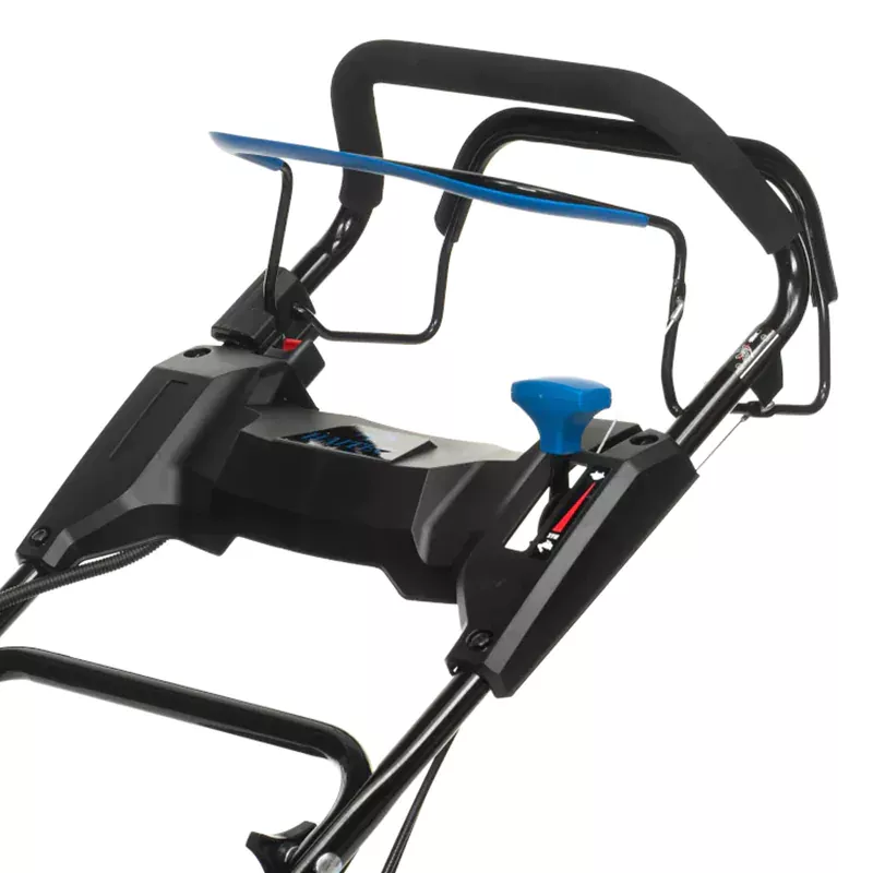 Бензиновая газонокосилка оснащена 4-тактным двигателем, французской трансмиссией и вариатором. Дроссельная заслонка автоматически настраивается под условия окружающей среды, чтобы вы могли завести мотор без предварительной подкачки топлива. Машина с задним приводом перемещается со скоростью до 4,5 км/ч. На участках со сложным рельефом и ландшафтным дизайном привод можно отключить, чтобы облегчить маневрирование.