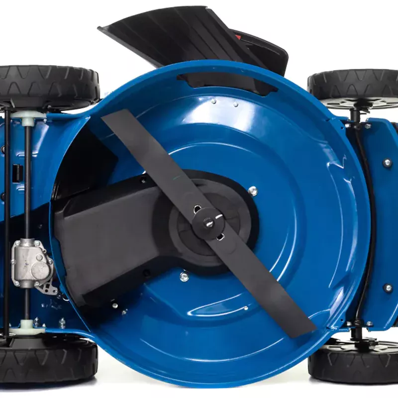 За счет привода на задние колеса косилка движется сама, оператору не приходится прикладывать для этого усилия. На участках со сложным рельефом и ландшафтным дизайном привод можно отключить, чтобы облегчить маневрирование.