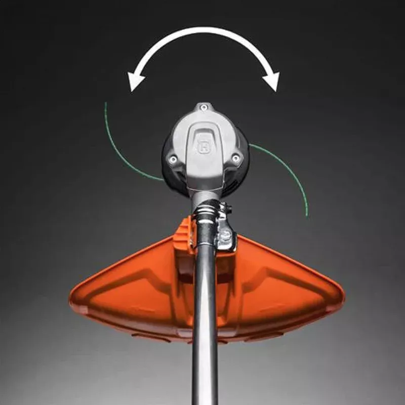 Управляющую ручку в форме велосипедного руля удобно держать в руках и управлять устройством. Мягкие плечевые ремни грамотно распределяют и без того небольшой вес 3,8 кг на спину и руки, предотвращая переутомление от интенсивной работы. Нижняя рукоятка настраивается под нужный угол, а за верхнюю удобно держать при работе на склонах. Подключите в дополнение ранцевую батарею, и таким триммером можно перекосить хоть всё поле.
