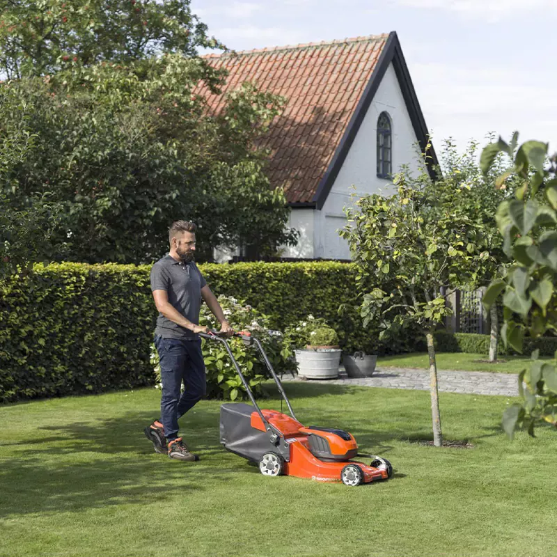Аккумуляторная газонкосилка для газонов средних размеров с увеличенной шириной скашивания. Легкая дека из композитного материала для легкого маневрирования.