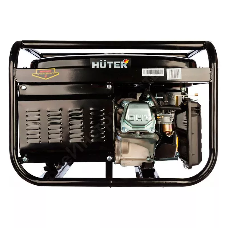 Корпус электростанции Huter DY5000L защищен прочной металлической рамой. Благодаря этому аппарат устойчив к ударам и механическим повреждениям. Такая конструкция таже упрощает переноску, выполняя функцию рукоятей.