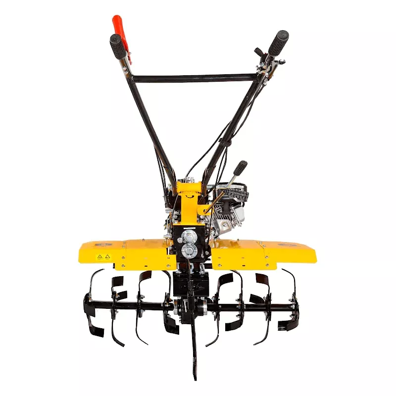Элементы управления расположены на рукоятках для удобства использования агрегата. Большие колеса с глубоким протектором способствуют хорошей проходимости по любой поверхности. На корпусе предусмотрен щиток, который предотвращает попадание земли на оператора. За счет нескольких скоростей - 3 вперед/ 1 назад можно выбрать оптимальный вариант для обработки почвы.