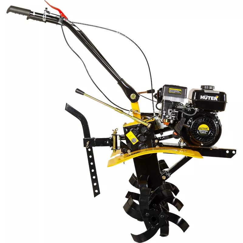 Мотоблок Huter МК-7800PL BIG FOOT оснащена высокими проходимыми колесами с глубокими протекторами для лучшего сцепления с грунтом. Комплект фрез в полной сборке обеспечивает ширину обработки в 100 см. Помимо вспашки почвы мотоблок может использоваться для окучивания и уборки картофеля, чистки снега, перевозки грузов и прочих работ благодаря возможности установки различного навесного оборудования. Машина оснащена четырехтактным бензиновым двигателем мощностью 7,8 л.с. с ручным стартером.