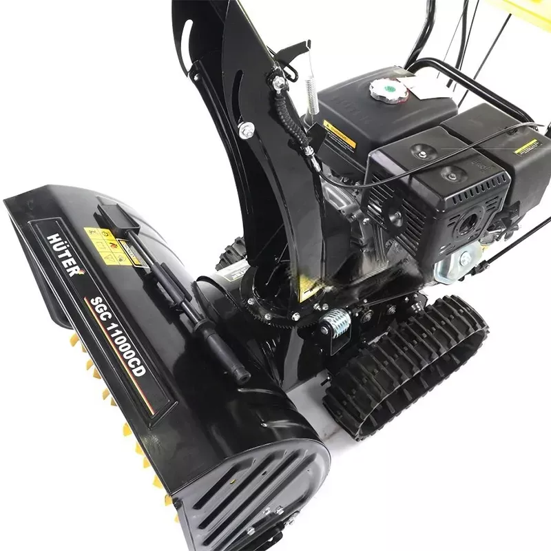 Снегоуборщик на гусеницах HUTER SGC 11000CD мощностью 15 л.с. подходит как для свежевыпавшего, так и для слежавшегося тяжелого снега. Гусеничный ход обеспечивает удобное управление и проходимость оборудования, даже в условиях гололеда.