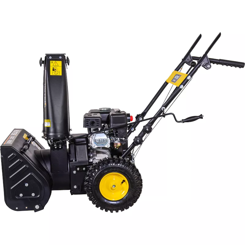 - Благодаря 4-тактному бензиновому двигателю мощностью 6,5 л.с. машина без труда убирает даже плотный и замерзший снег.