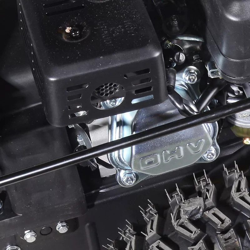 6-ступенчатая коробка передач позволяет адаптировать бензиновый снегоочиститель под конкретные условия работы и скорость уборки. Высота захвата составляет 56 см, что подходит для чистки глубокого снега. При необходимости можно увеличить или уменьшить обороты двигателя с помощью рычажка на корпусе. Функция поможет ускорить процесс уборки или снизить потребление бензина.