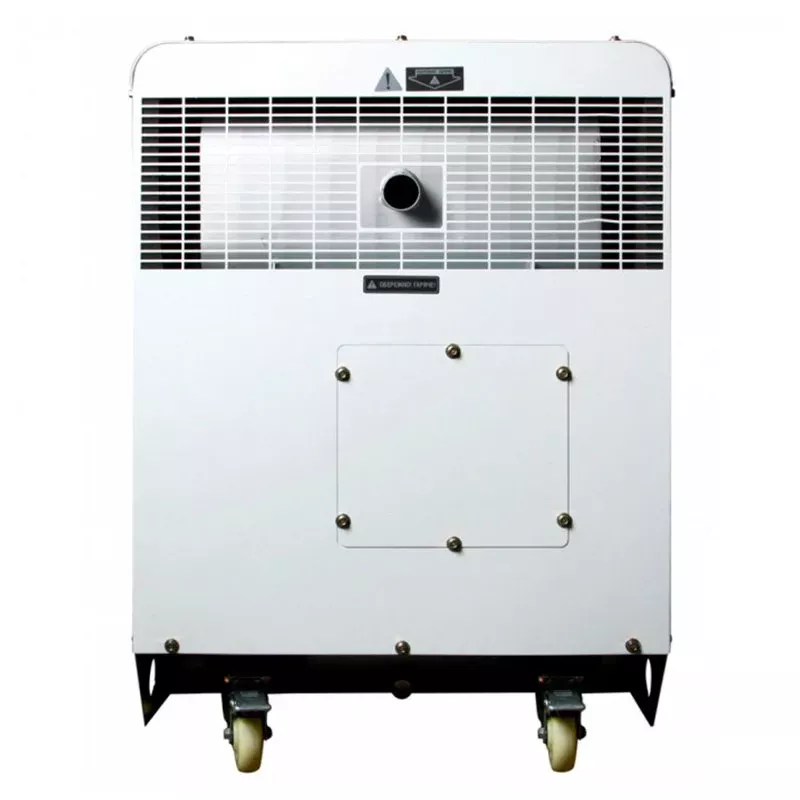 Комплектующие генератора облачены в прочный металлический корпус с защитой от коррозии. Наличие дверцы для техобслуживания значительно облегчит задачу. Модель поставляется в открытом исполнении и шумопоглощающем кожухе, также можно заказать шасси для транспортировки.
