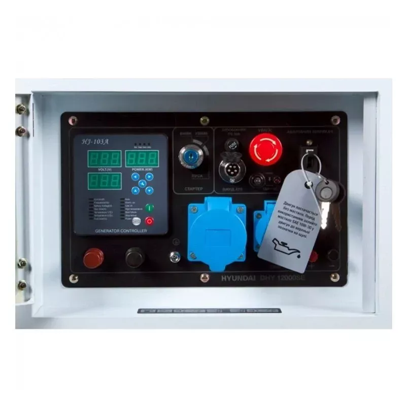Выход на 12 B с тепловым предохранителем от перегрузки подходит для зарядки автомобильного аккумулятора. Розетки электрогенератора Hyundai DHY 12000SE оснащены тепловыми предохранителями от перегрузки. Крышки надёжно защищены от пыли и влаги, поскольку оборудованы автовозвратными мембранами для плотного закрытия после изъятия вилок.