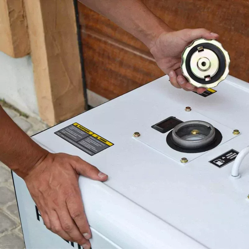 Одной полной заправки бензобака объемом 15 л достаточно для питания всех необходимых приборов в течении 11 ч, при 75% нагрузке на двигатель. На заливной горловине установлен фильтр мелкой чистки, который предотвращает загрязнение топлива. Индикатор заполненности бака помогает контролировать уровень горючего.