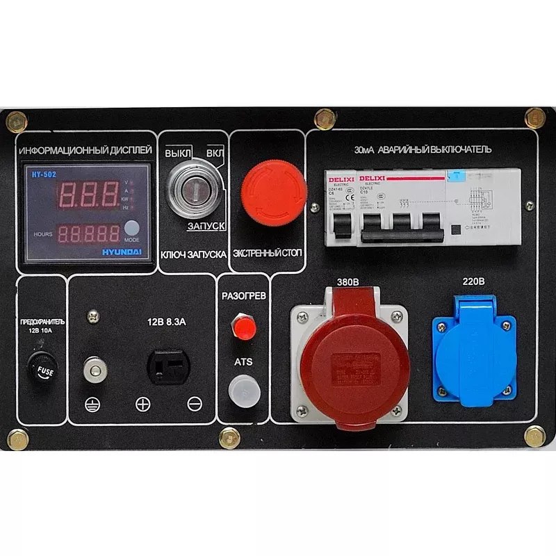 Благодаря системе Easy Start электрогенератор Hyundai DHY 8000SE-3 заводится быстро и просто. Предусмотрено два режима запуска – ручной и автоматический. При возникновении неисправностей работу станции можно остановить нажатием на аварийный выключатель.