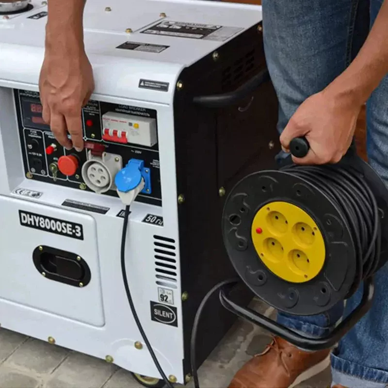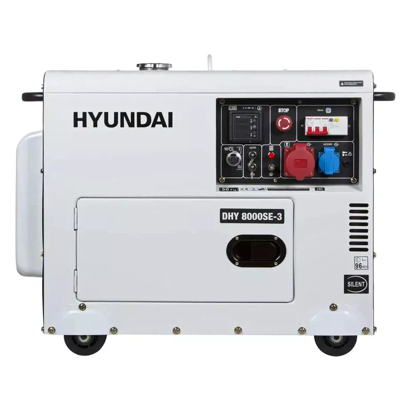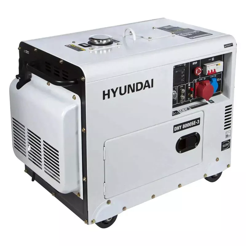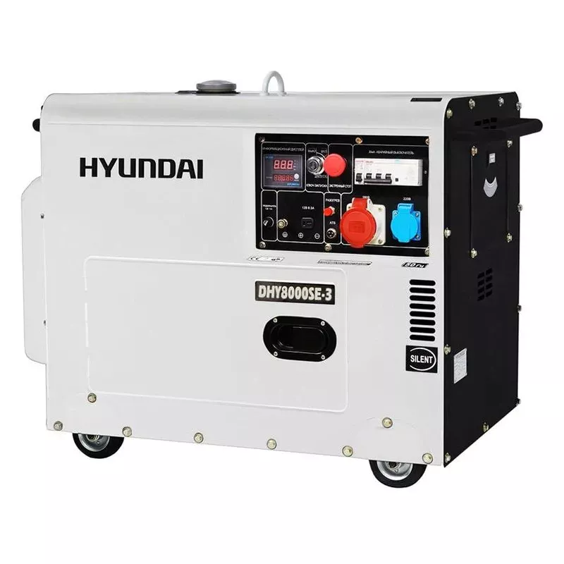 Дизельный генератор Hyundai DHY 8000SE-3 подходит для питания бытовой, садовой, компрессорной техники. Бензиновый стальной бак на 15 л позволяет работать до 11 ч без остановки и дозаправки при нагрузке до 50%. С помощью разъема на 12 V можно зарядить автомобильный аккумулятор, музыкальную колонку и другие устройства.