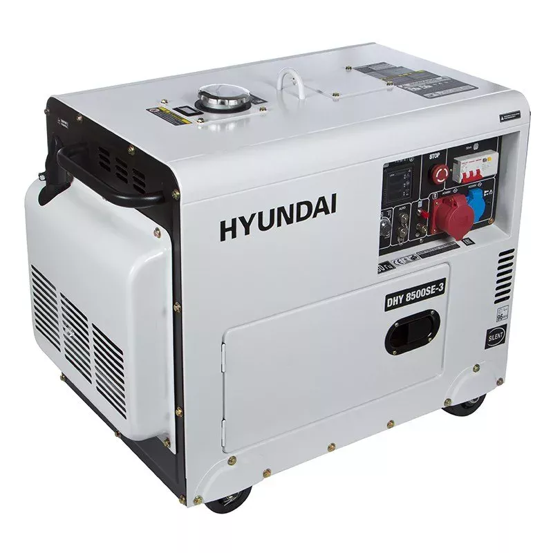 Дизельный генератор Hyundai DHY 8500SE-3 оснащен профессиональным двигателем с максимальной выходной мощностью 7,2 кВт. Стандартная розетка на 16 А предназначена для питания однофазных приборов, а силовой выход на 32 А позволяет подключать трехфазные потребители.