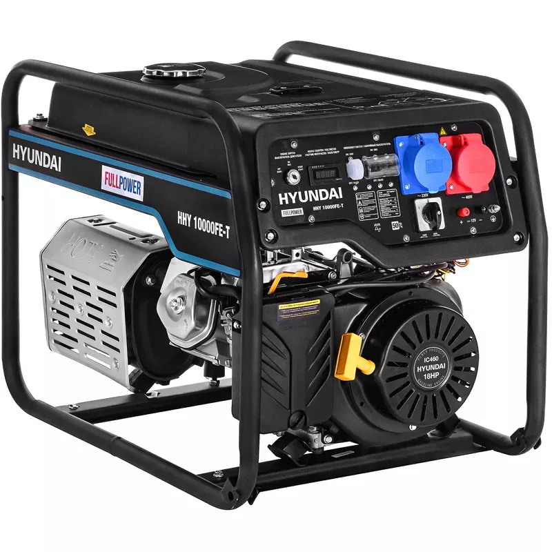 Бензиновый генератор Hyundai HHY 10000FE-T с функцией силового переключения позволяет выстраивать однофазный или трехфазный режим на 220 В и 380 В соответственно. Система легкого запуска дает возможность заводить двигатель одним поворотом ключа.