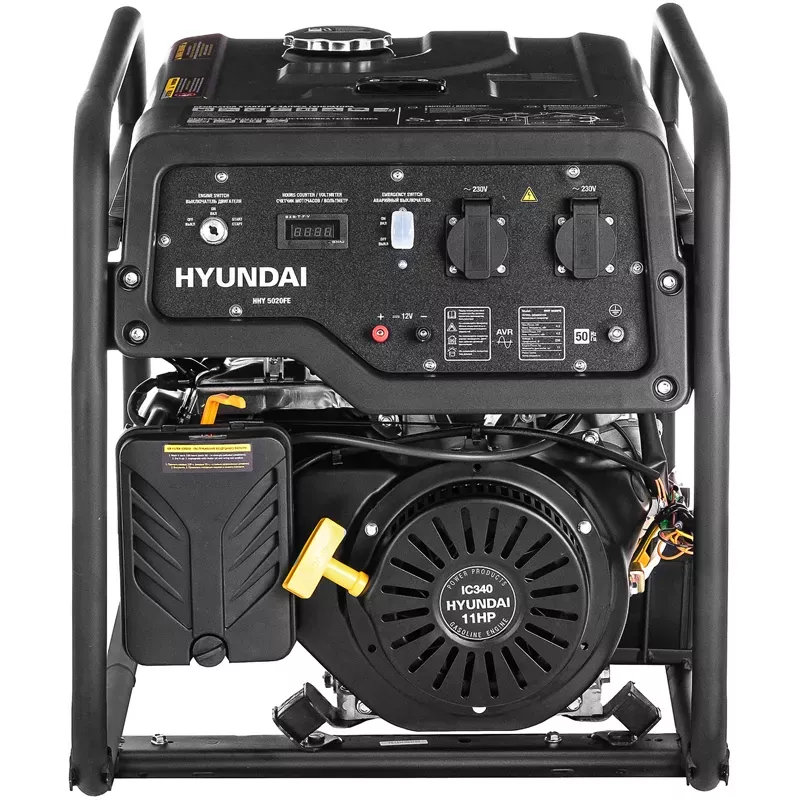 Панель управления бензогенератора Hyundai HHY 5020FE оборудована цифровым вольтметром, который измеряет уровень потребляемого напряжения. Переключив его на счетчик моточасов, вы можете контролировать длительность работы двигателя с момента первой или последней активации.