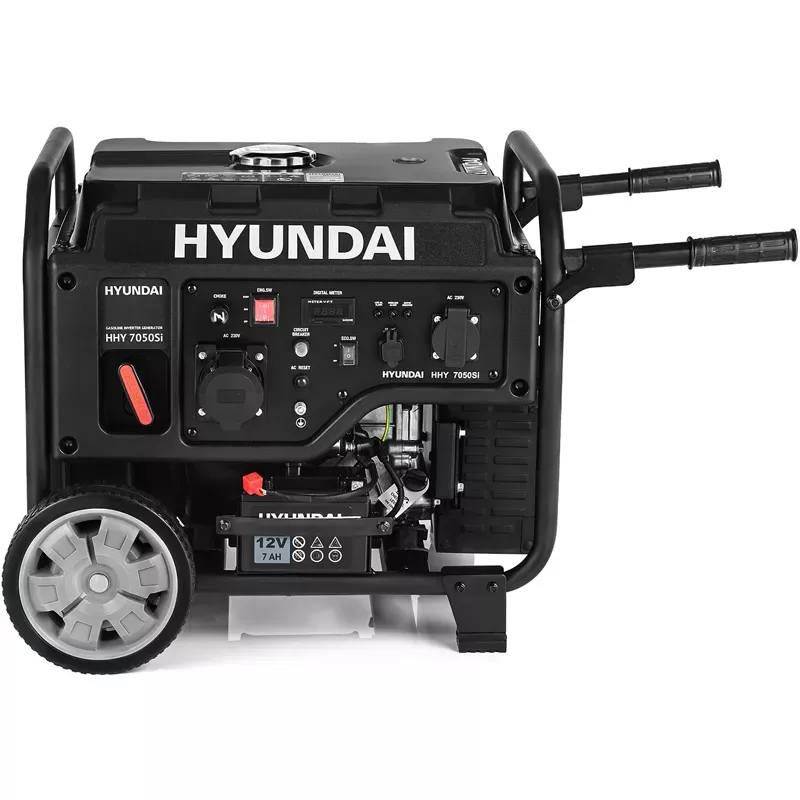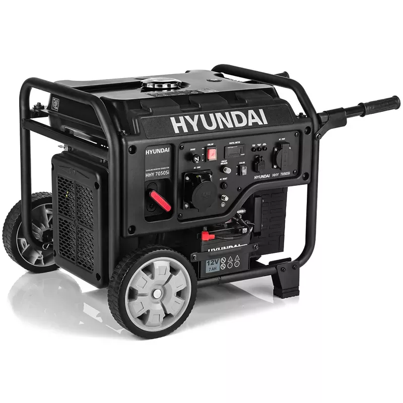 Инверторный генератор Hyundai HHY 7050Si номинальной мощностью 5 кВт вырабатывает качественный ток со стабильной синусоидой, что позволяет использовать его в качестве резервной электростанции для загородного дома, питания котлов отопления и высокоточных приборов. Устройство оснащено четырехтактным бензиновым двигателем мощностью 9,5 л.с., вместительным топливным баком и колесами для перевозки. Температура эксплуатации: от -5°С до +35°С.