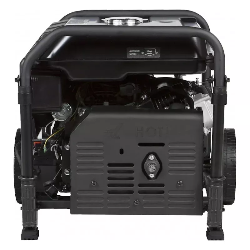 Переключатель ECO позволяет перевести генератор Hyundai HHY 7050Si в экономичный режим, обеспечивающий оптимальный расход топлива за счет изменения скорости работы двигателя в соответствии с подключенной нагрузкой. При перегрузке по току, перегреве инвертора или увеличении напряжения срабатывает предохранитель. В этом случае выработка электроэнергии прекращается во избежание повреждения самого генератора и подключенных к нему устройств. Если в процессе эксплуатации уровень масла в картере станет критическим, двигатель автоматически останавливается.