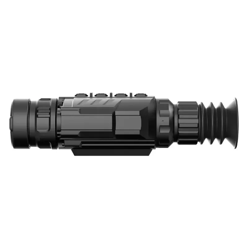 Сердце прибора – матрица iRay VOx Ceramic 384x288 с плотностью 12 мкм. Чувствительность <40mk позволяет улавливать тепло даже от далеко расположенных объектов. Максимальная дальность обнаружения предмета размером с автомобиль равна 2600 м, человека – 1818 м, кабана – 1326 м, зайца – 397 м. Большим дистанциям работы и высокой детализации тепловых изображений способствует использование 35-миллиметрового объектива из германия. Данный материал передает больше тепловой информации чем прочие аналоги.