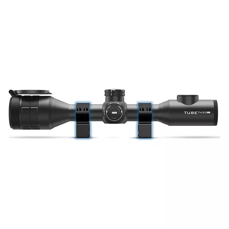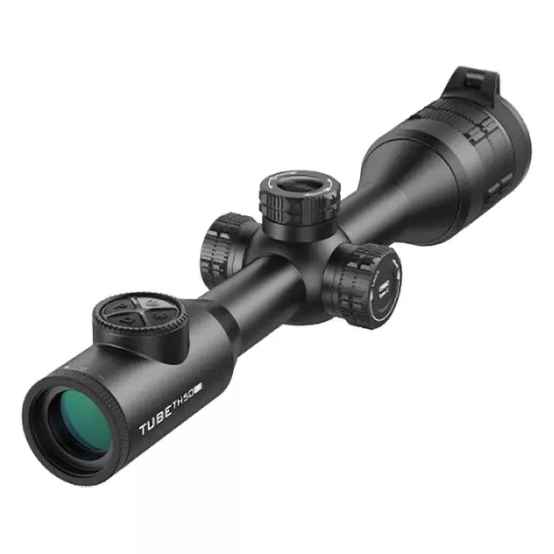 Тепловизор Tube TH 50 V2 имеет классический форм-фактор и легко устанавливается на оружие с помощью 30-миллиметровых колец. Устройство выдерживает импульс дульной энергии до 6000 Дж и может использоваться с любыми охотничьими ружьями и винтовками. Управлять прицелом несложно: кнопки и джойстик имеют крупный размер и расположены в верхней части корпуса. Настройку легко выполнять на ощупь без визуального контроля.
