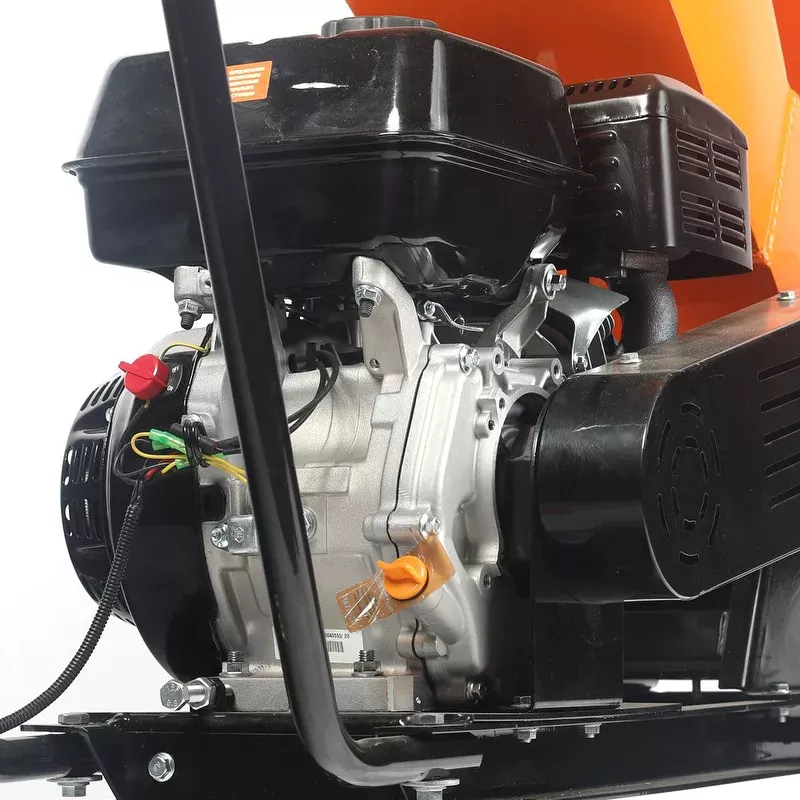 Бензиновый измельчитель веток оснащен 4-тактным двигателем с рабочим объемом 270 см3, мощностью 9 л.с. Крутящий момент от двигателя к рабочим ножам передается через ременный привод, который обеспечивает плавность и бесшумность работы, сглаживает перегрузки, не требует смазки.