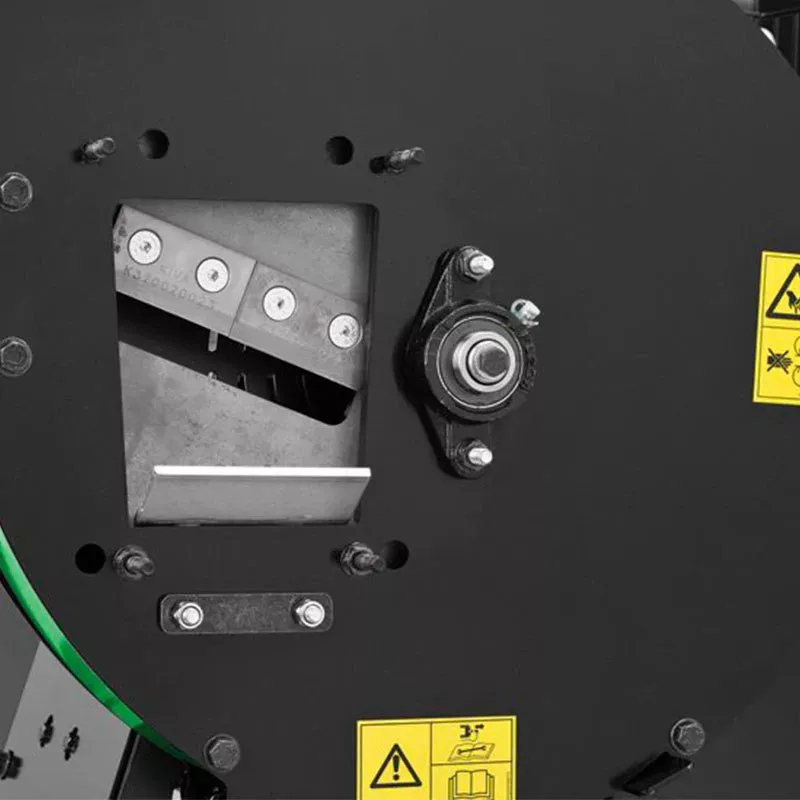 Состоит из диска с двумя острыми лезвиями и одним разбивающим. Простая в обслуживании и не требует трудоемкой заточки или замены большого количества ножей.