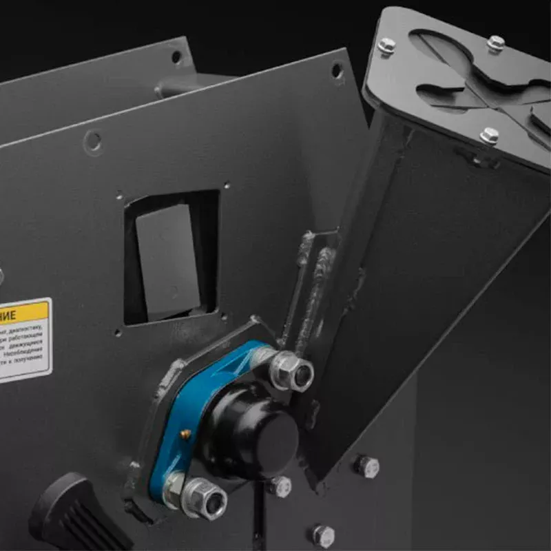 Режущие элементы изготовлены из высокопрочной углеродистой стали. Ветви и сучья попадают сначала на острые ножи, а затем на молоточки, которые дробят материал на мелкие части.
