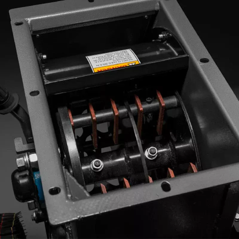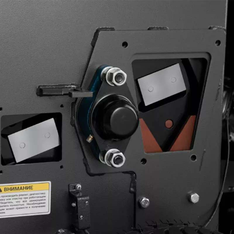 Машина способна утилизировать не только ветки деревьев, но и другой садовый мусор (траву, листву и т.д.). Крупные и плотные ветви подаются через боковой раструб для прохождения через всю систему ножей, а мелкие палочки, ветки и растительный мусор – через верхний, непосредственно на молоточки. Таким образом, увеличивается рабочий ресурс ножей дробилки.
