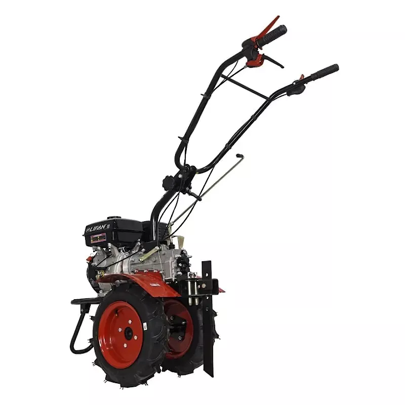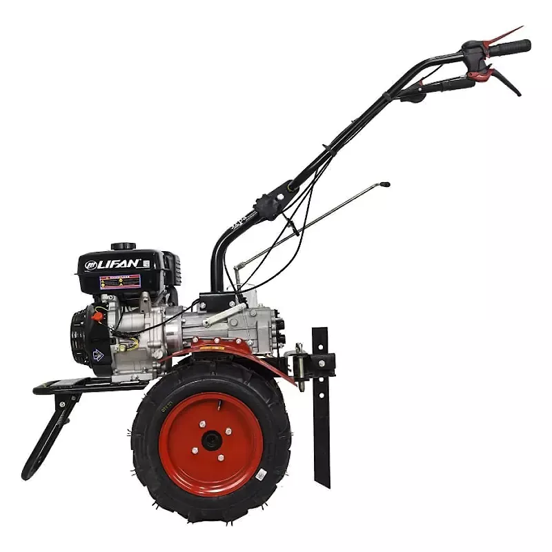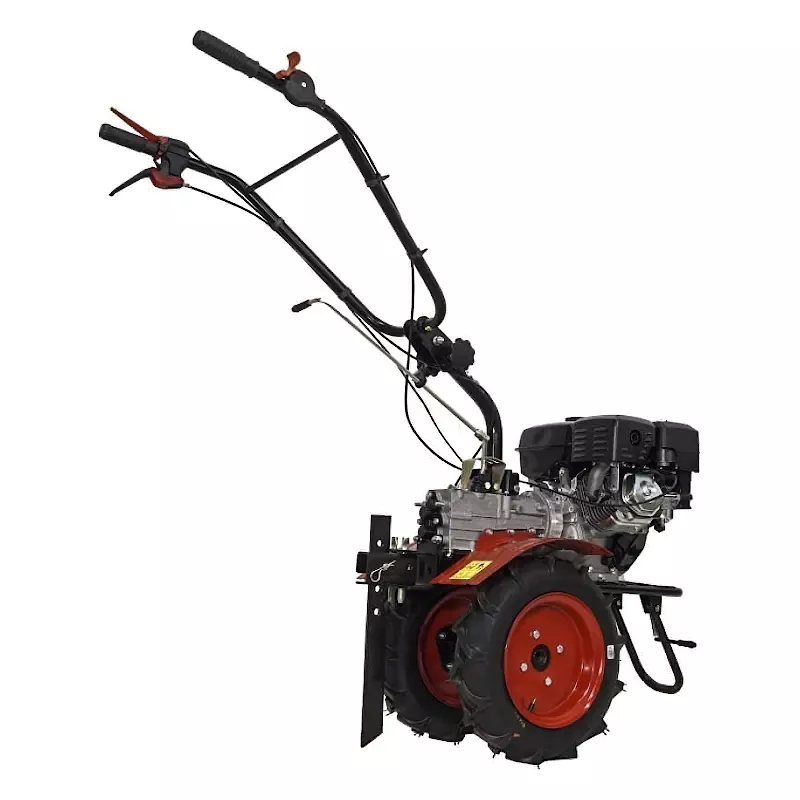 Благодаря мощному двигателю и многоступенчатой коробке передач бензиновый мотоблок справляется с культивацией различных видов почвы. Обработка тяжелой земли выполняется на первой скорости, легкой и рыхлой — на второй передаче. Быстрый переезд машины между участками обеспечивает третья ступень КПП. Путем перестановки сошника можно отрегулировать глубину вспашки и добиться устойчивого положения мотоблока для работы с минимальным креном.