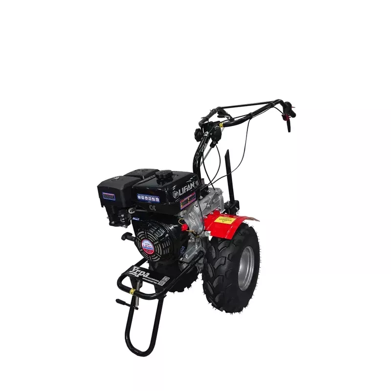 Большие колеса диаметром 51 см с рельефными протекторами отличаются отличным сцеплением с грунтом и проходимостью. Задний ход обеспечивает маневренность машины. Скорость передвижения ступенчато регулируется в зависимости от погодных условий вспашки и состояния почвы.