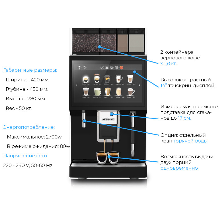 Кофемашина Jetinno JL35 — это суперавтоматическая премиум-модель для кофеен, индустрии HoReCa и оптовой торговли. Она сочетает в себе лучшие традиции европейских суперавтоматов и новейшие технологии Jetinno. Она снащена двойным заварочным устройством, системой подачи свежего молока и отдельным выходом для горячей воды. Встроенный капучинатор позволяет приготовить идеальные кофейные напитки с натуральным молоком, сравнимые по качеству с теми, что готовит высококлассный бариста. Может приготовить более 20 напитков, 250 чашек в день и регулируемая высота носика. JL35 — идеальное решение для развертывания HORECA, профессиональная кофемашина для каждого вашего кофе.