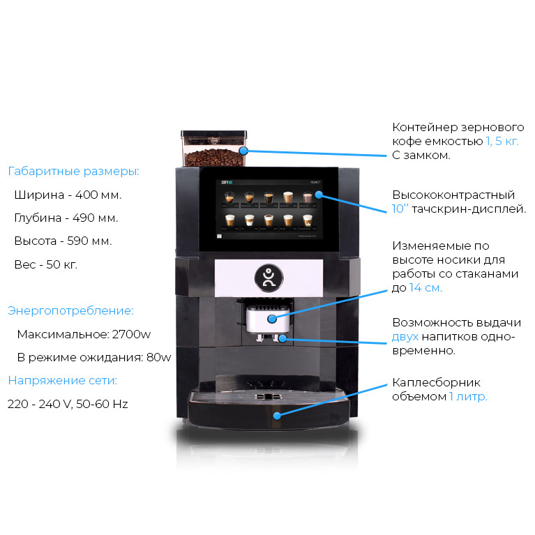 - Автоматическая промывка, настраиваемая по времени или по количеству выданных напитков