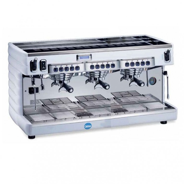 Кофемашина Carimali Bubble 3 Gr низкие группы используется в кофейнях, киосках, барах и ресторанах для приготовления кофе и напитков на его основе. Модель оснащена 5 кнопками управления на группу, буквенно-цифровым дисплеем, бойлером с теплообменником с термосифонической циркуляцией и площадкой для подогрева чашек из нержавеющей стали.