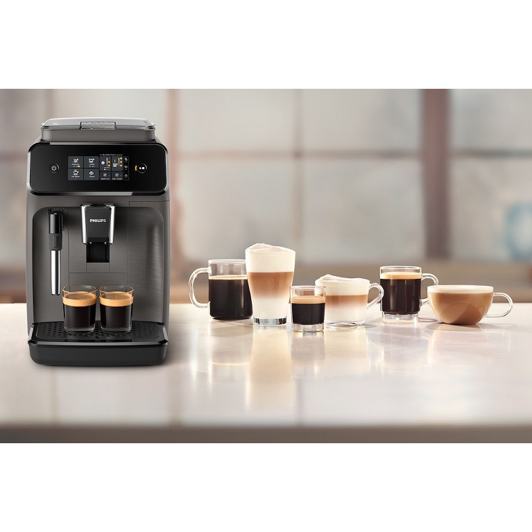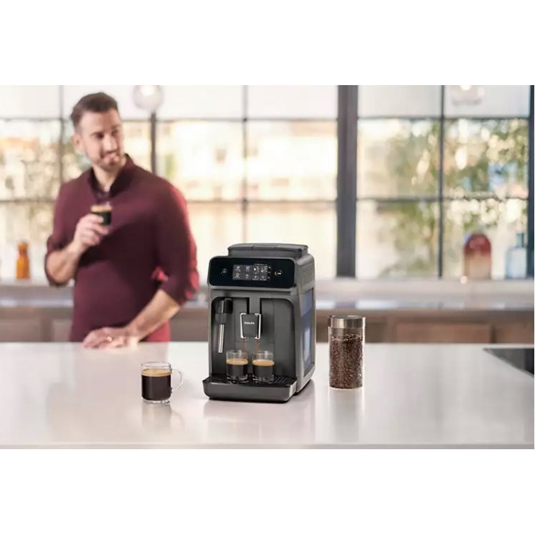 Кофемашина Philips EP1224/00 Series 1200 оснащена сенсорным дисплеем, поэтому пользователь одним касанием на клавишу может выбрать необходимый бодрящий напиток. Устройство с высокой мощностью 1500 Вт и давлением, составляющим 15 бар, способно приготовить одновременно несколько порций эспрессо. Конструкция оборудована капучинатором, который рассчитан на создание воздушной молочной пены. О готовности к работе, а также необходимости очистки уведомят специальные индикаторы, что обеспечивает комфортные условия в процессе эксплуатации.