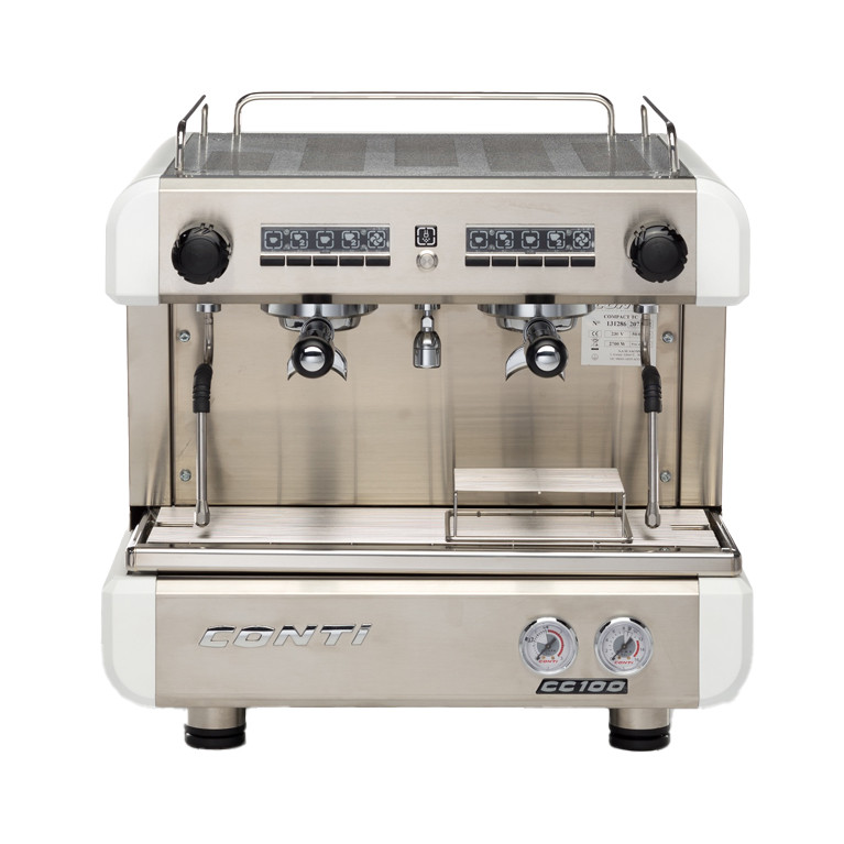 Кофейный аппарат CONTI CC100 Compact TC White 2 группы идеально подходит для использования в кофейнях, барах и ресторанах. Этот профессиональный компактный эспрессо-кофемашина с двумя группами от компании Conti, Монако, оснащена PID контроллером, подключением к водопроводу и термосифонной системой стабилизации температуры.