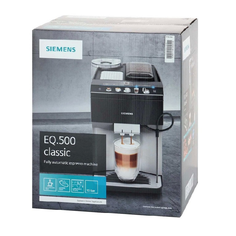 Кофемашина Siemens TP501R09 EQ.500 classic оснащена автоматическим капучинатором. За счёт этого вы в считанные минуты приготовите не только крепкий эспрессо, но и нежный латте макиато. Просто прикоснитесь к соответствующей кнопке на сенсорной панели управления. Благодаря системе экстракции и заваривания iAroma вкус бодрящего напитка получается максимально насыщенным. Невероятный аромат и двойная крепость без лишней горечи в каждой чашке! Контрольное меню блокируется, поэтому дети не смогут поиграть клавишами, да и вы сами случайно не вмешаетесь в работу устройства во время уборки. При бездействии дольше 15 минут модель отключится, чтобы зря не расходовать электроэнергию.