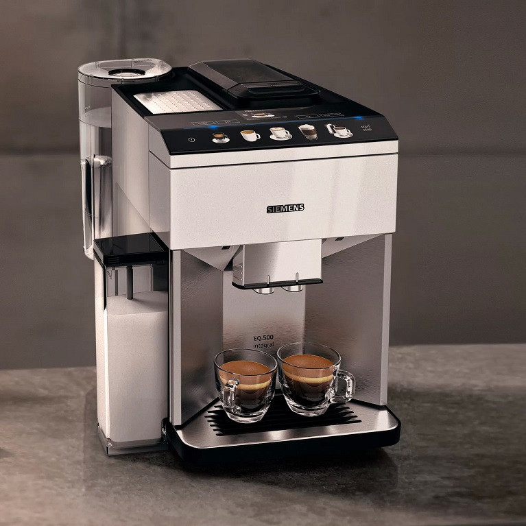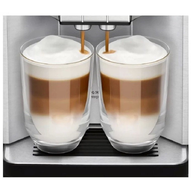 Кофемашина Siemens TQ507R02 EQ.500 integral оптимально подходит не только для домашнего, но и офисного использования. Создайте до шести индивидуальных профилей и вам больше не придётся каждый раз задавать настройки заново. Если вы не любите пить кофе в одиночестве, то приготовьте две чашки подряд и угостите кого-нибудь из домочадцев или коллег. Быстро не остывать напитку поможет предварительный нагрев кружек на специальной подставке. Дозатор регулируется по высоте, так что наполнять можно и стаканы. Молочная система автоматически очищается паром – вам не нужно заниматься этим вручную. Заварочный блок снимается, поэтому он легко промывается под струёй проточной воды. О необходимости удаления накипи сообщит наглядный индикатор.
