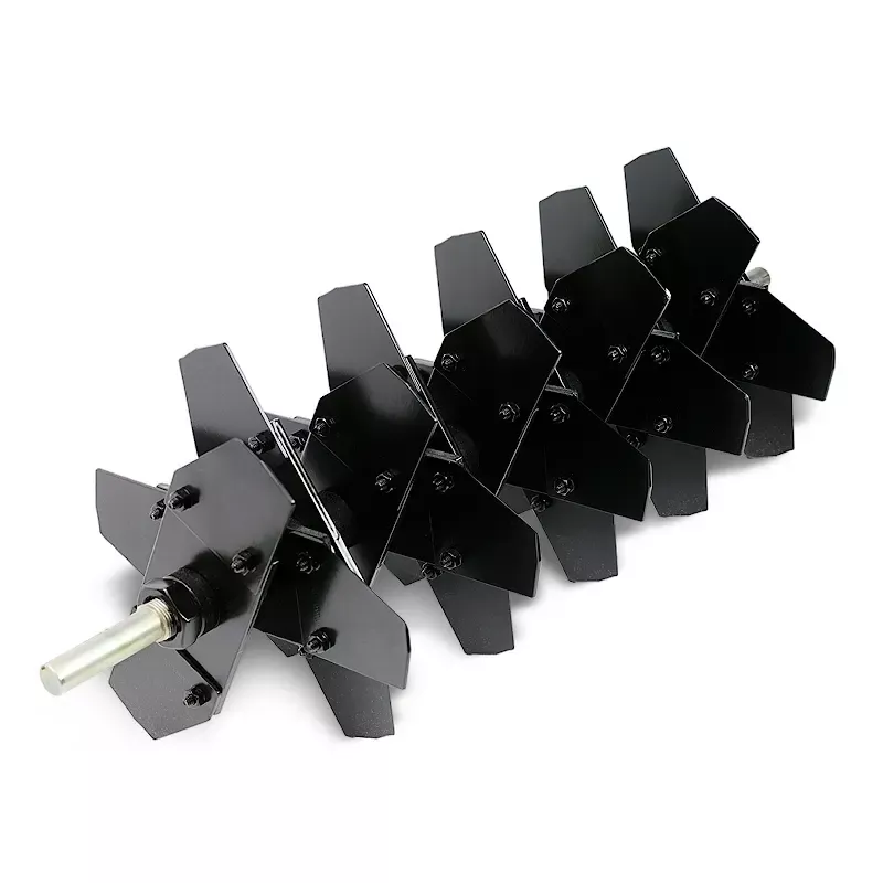 - Рабочий орган с 20 вертикальными неподвижными ножами из аустенизированной стали, установленными под углом 28°. Срезает поверхностные корни, растущие в боковом направлении, и открывает поверхностный слой почвы для улучшения проникновения кислорода, воды и питательных веществ. Используется совместно с сеялкой при подсеве.