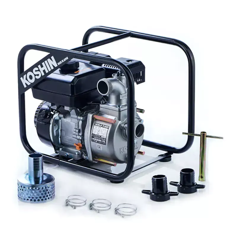 Мотопомпа японского производства Koshin SEV-80X при массе чуть более 30 кг имеет довольно высокую производительность в 63 куб.м/час. Ее обеспечивает надежный двигатель Koshin K180, который потребляет немного топлива и издает невысокий уровень шума. Корпус оборудования защищен рамой из стальных труб, которые также повышают удобство транспортировки. Бензиновая мотопомпа Koshin SEV-80X служит долгие годы, не теряя первоначальную производительность.