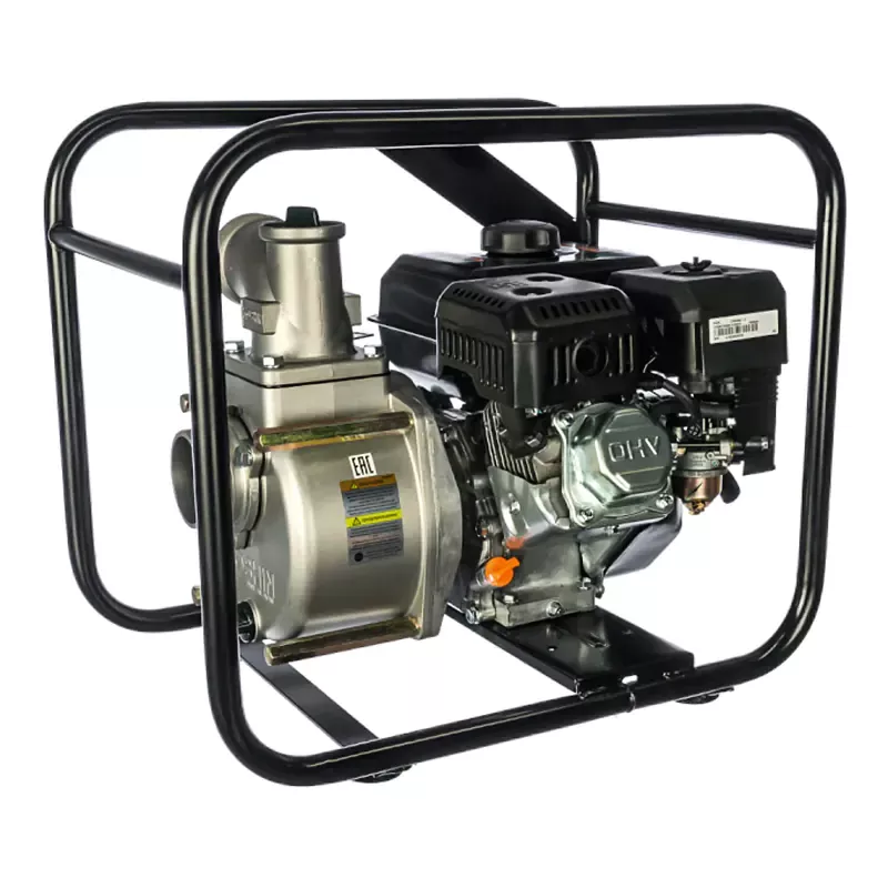 От механических повреждений во время хранения или транспортировки бензиновую мотопомпу защищает металлическая рама. Она представляет собой трубу, которая огибает весь корпус. Нижняя часть рамы используется в качестве устойчивой подставки, а верхняя выступает держателями.