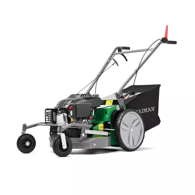 Бензиновая газонокосилка Caiman Athena 60S работает от 4-тактного двигателя мощностью 6 л.с. Модель самоходная и предназначена для кошения высокой травы на больших территориях площадью до 10000 м2. Задние колеса имеют увеличенный по сравнению с передними размер. Благодаря этому достигается высокая проходимость на участках с неровным рельефом.