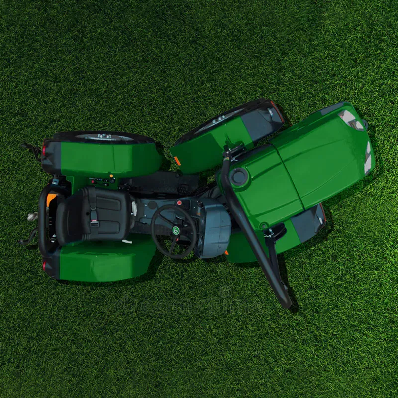 Двигатель без проблем заводится благодаря системе легкого старта и насосу предварительной подкачки топлива в карбюратор. Машина самостоятельно движется с постоянной скоростью 3 км/ч. Элементы управления удобно расположены на рукоятках. Вращение ножей мгновенно прекращается при отпускании рычага, расположенного под левой рукой.