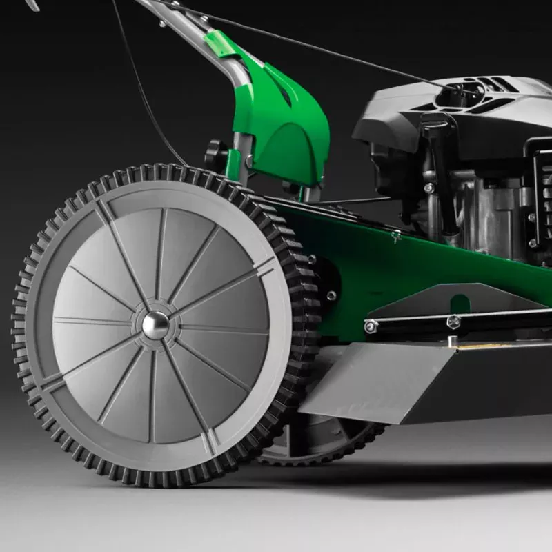 Нулевой радиус разворота обеспечивает максимальную маневренность модели. Вы с легкостью сможете объезжать препятствия, например фонарные столбы, клумбы, лавочки, деревья и т.д. При этом переднее сдвоенное колесо фиксируется, позволяя машине двигаться в прямом направлении. Это удобно, если вы работаете на ровном участке.