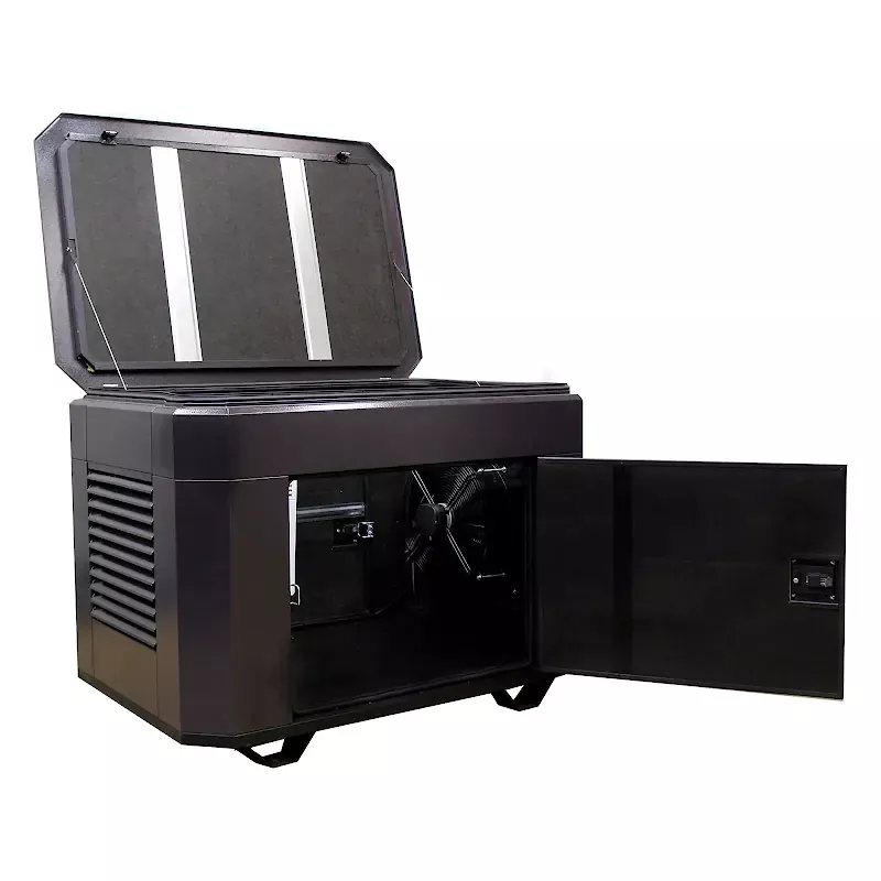 Кожух 1400SS в комплектации Winter предназначен для использования электростанций до 8,5 кВт круглый год, с помощью регулировки температуры и обеспечивает утепление генератора с помощью электрического подогревателя и охлаждение посредством промышленного вентилятора.