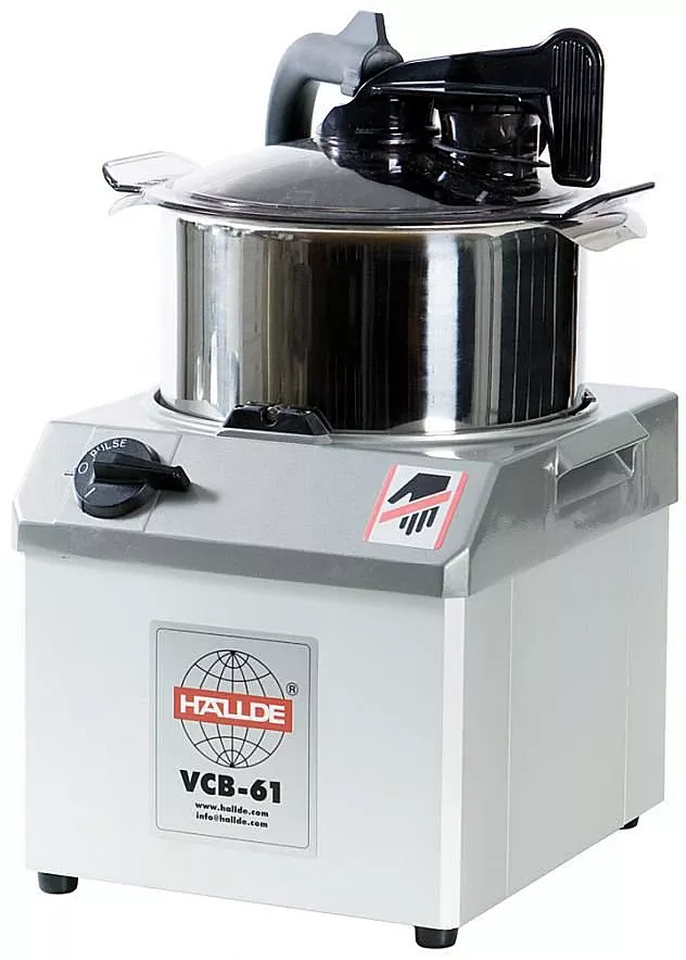 Куттер Hallde VCB-61 предназначен для переработки влагосодержащих, сухих и жидких пищевых продуктов: измельчение, мелкая нарезка и перемешивание практического любого типа продукта - от овощей до орехов, приготовление ароматизированных масел, майонеза, десертов, фарша, пюре, паштетов, панировочных сухарей и т.п. Модель подходит для кухонь детских садов, домохозяйств, армейских столовых, морских судов, ресторанов, отелей, предприятий общественного питания, пекарен, кафе/баров, супермаркетов и т.д.