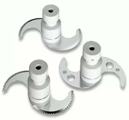 Крепкие ножи-насадки с волнистым лезвием из стали, подверженной тепловой обработкой.