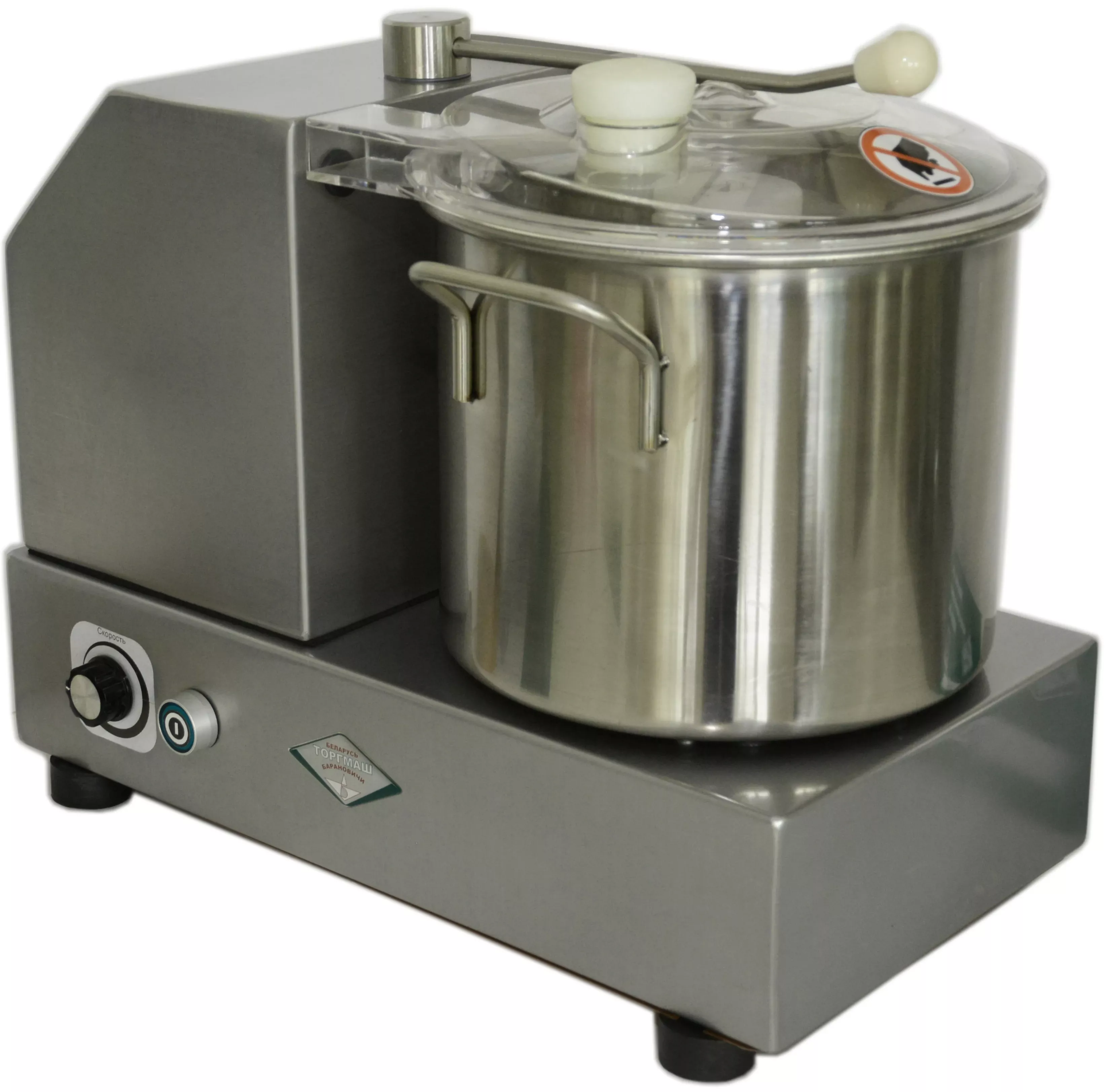Куттер состоит из корпуса из нержавеющей стали, привода, дежи, ножевого узла, крышки и провода питания.