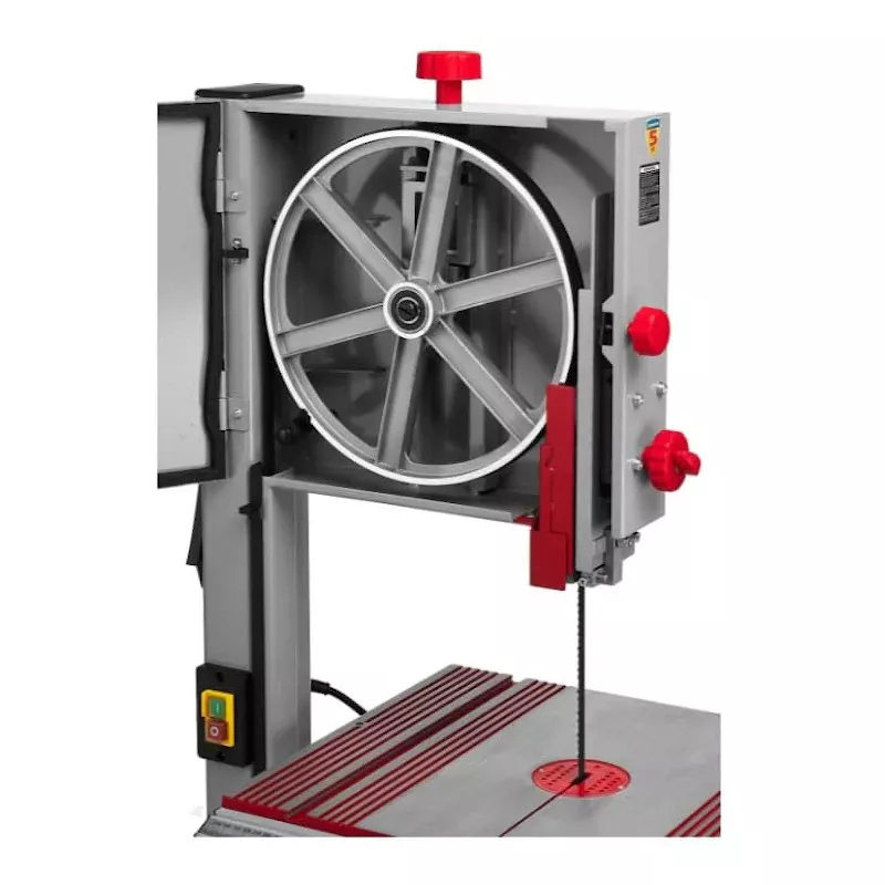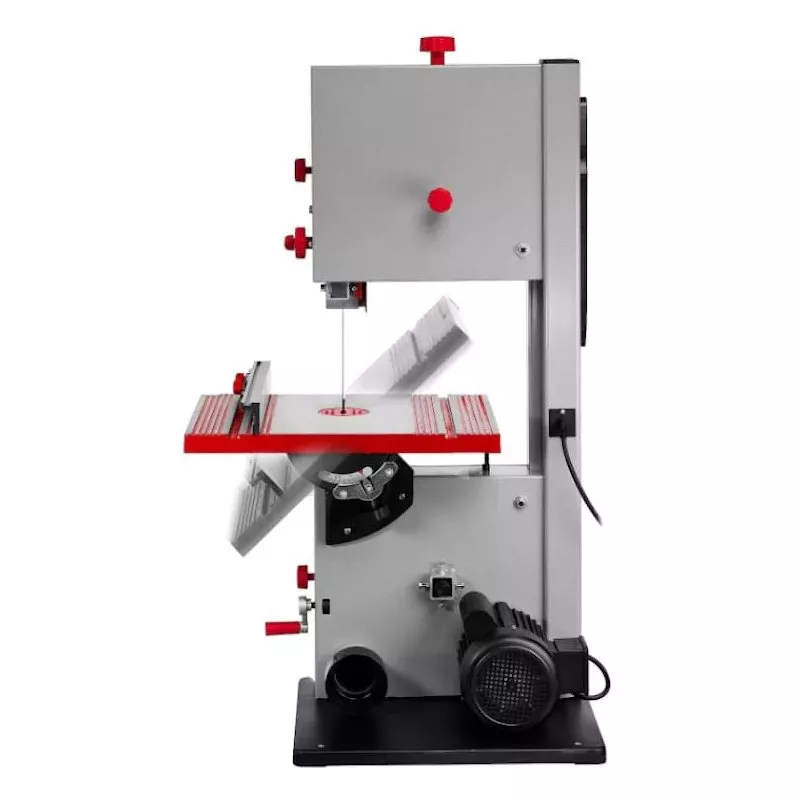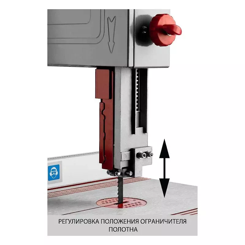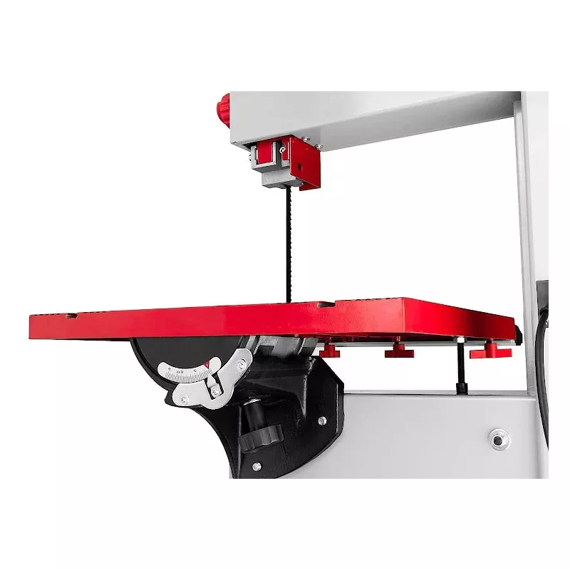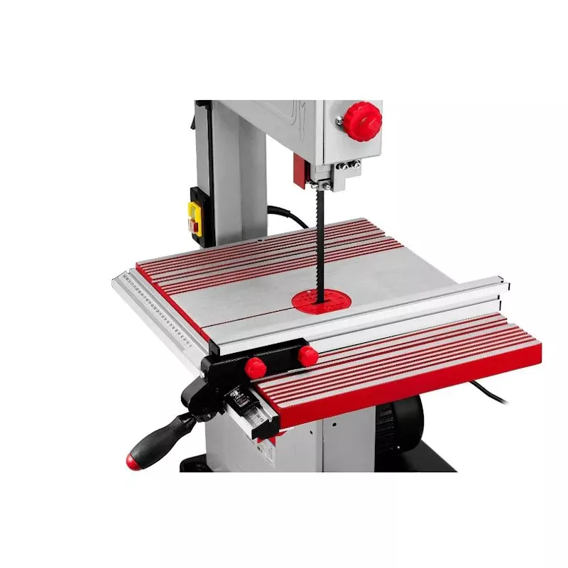 Ленточная пила поддерживает две скорости движения пильного полотна. Это очень удобно при работе с разными материалами, для которых требуется определенный темп обработки. Рабочий стол оборудован механизмом наклона, позволяющим быстро изменить положение для удобства пиления под углом. Подвижные продольные и угловые упоры, оснащенные шкалой, обеспечивают точность распила заготовок.