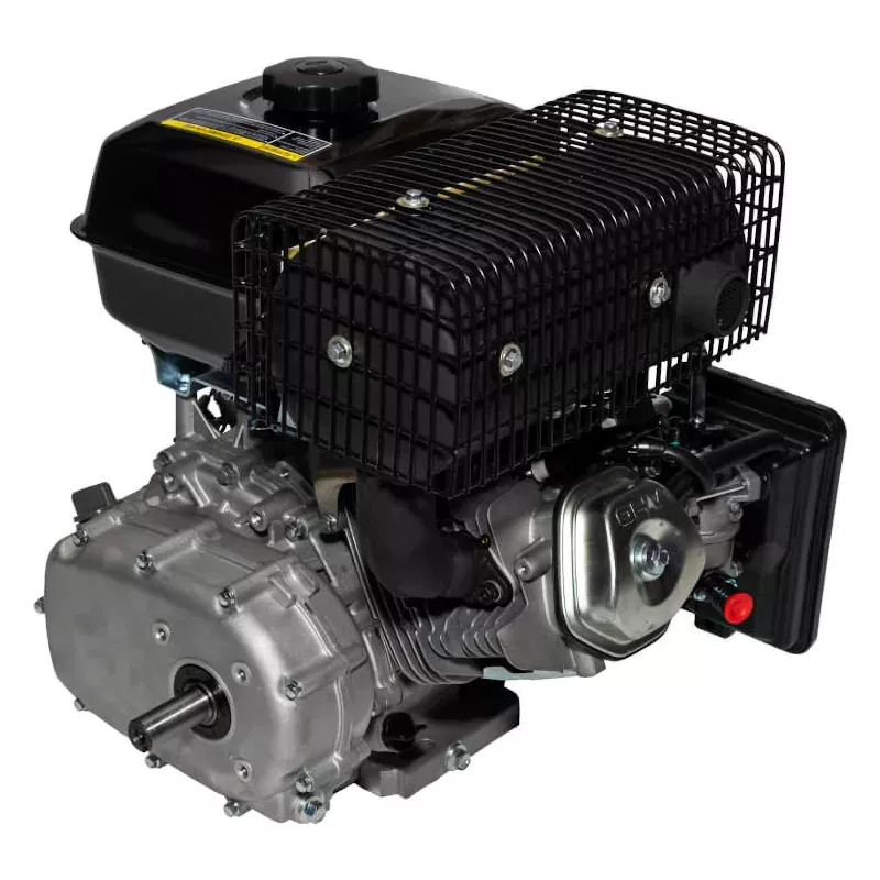Бензиновый двигатель Lifan 192 F-2-R разработан для установки на мототехнику различного уровня. Двигатель хорошо подходит для установки на культиваторы и мотоблоки, мотобуксировщики, мотопомпы, генераторы и другую технику. Эта модель сочетает в себе долговечность, экономичность с умеренной стоимостью и простотой в использовании. Наличие понижающего редуктора позволяет расширить область применения двигателя. Это четырехтактный одноцилиндровый двигатель внутреннего сгорания. Рабочий объем цилиндра составляет 445 кубических сантиметров, номинальная мощность достигает 14,6 лошадиных сил, а максимальная может достигать 18.5 лошадиных сил. Диаметр цилиндра и тип газораспределительного механизма позволяют обеспечить компактные размеры двигателя, он свободно устанавливается на многие модели малой сельскохозяйственной техники. В качестве топлива эта модель использует широко распространенный автомобильный бензин марки АИ-92, потому проблем с горючим не возникнет. Коленчатый вал имеет горизонтальное расположение, это также способствует небольшим размерам, а кроме того существенно упрощает конструкцию и монтаж силового агрегата на шасси. Крутящий момент достигает 51 Н.м при 1500 оборотов в минуту, при этом сохраняется высокая стабильность работы и небольшой расход бензина. Емкость топливного бачка равна 6,5 литрам, одной заправки достаточно для длительной непрерывной работы. В качестве смазки используется доступное и известное каждому автомобилисту моторное масло 10х30, 10х40 для одной заправки маслом требуется не более 1,1 литра. Транзисторная система зажигания проста в обслуживании и долговечна, она способствует стабильной работе двигателя при любых условиях. Двигатель Lifan 192 F-2-R обладает массой в 36 килограмм, это легковесный и компактный агрегат, он способен обеспечить высокую продуктивность работы при минимальных затратах и потерях. Его простая конструкция не создаст проблем при установке или при обслуживании, использование эффективного воздушного охлаждения позволяет активно использовать мотор даже в жаркую погоду, удобный пусковой тросик обеспечивает легкий запуск двигателя.
