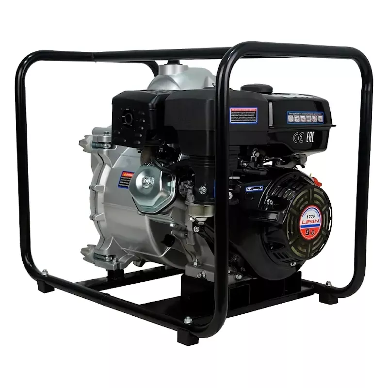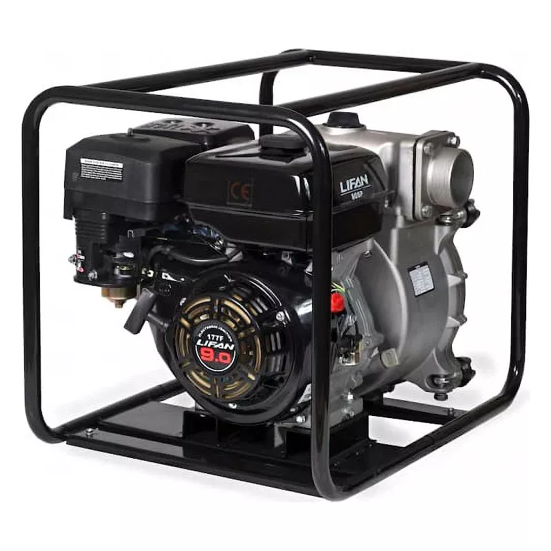Бензиновая мотопомпа оборудована надежным и экономичным двигателем Lifan 177F мощностью 9 л.с. и рассчитана на интенсивную и продолжительную эксплуатацию. На одном баке топлива помпа может работать до 2 ч, перекачивая за это время значительные объемы воды.